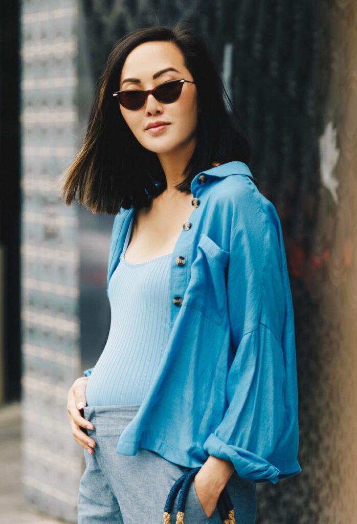 - The Airflow Layer: An unbuttoned oversize shirt (denim, chambray, or gauzy cotton) acts as a sun shield and chic cover-up. Bonus: It camouflages postpartum layers later.